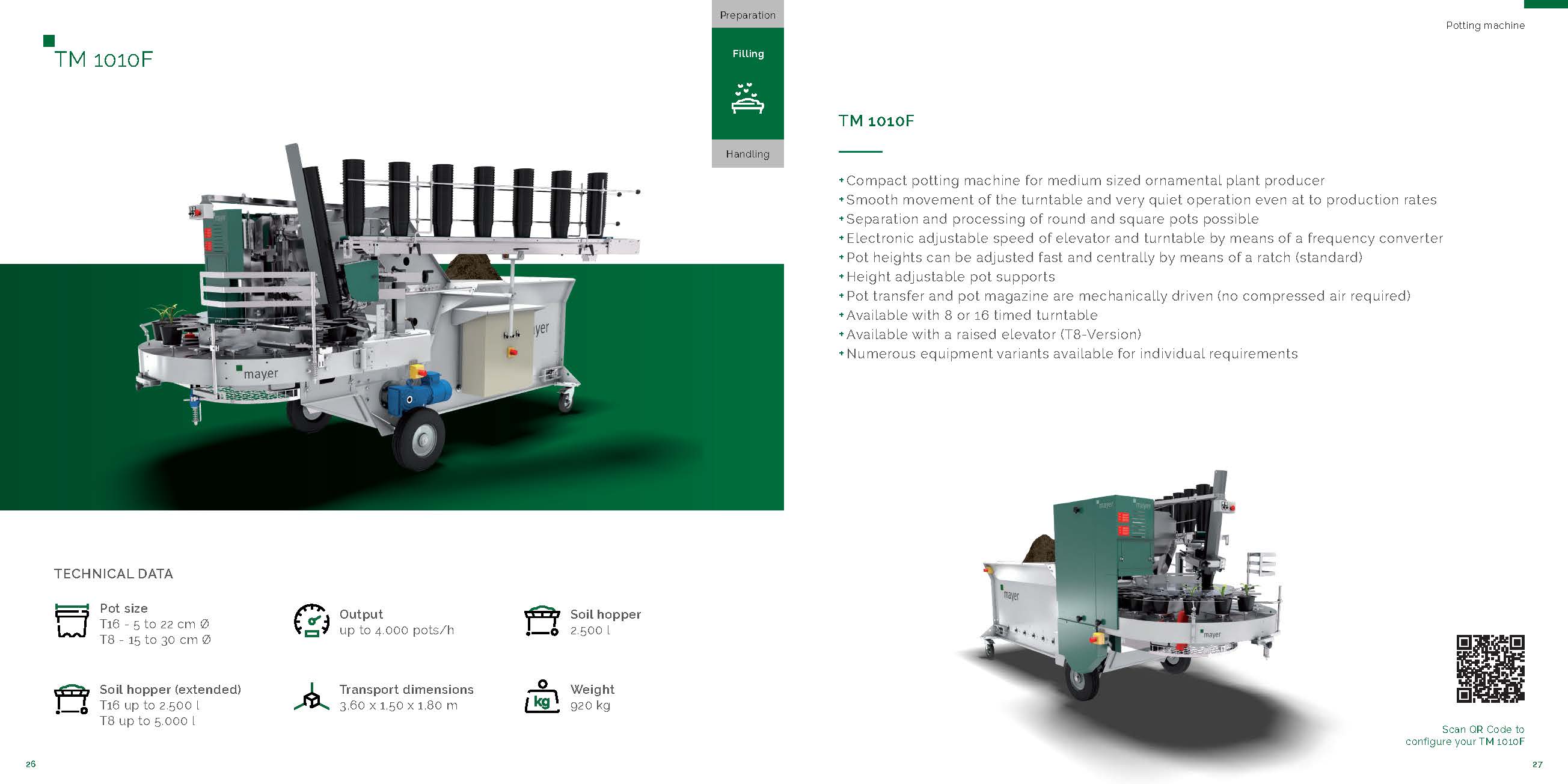 TM 1010 F上盆機的生產(chǎn)效率提高的同時,操作和控制也非常方便。例如,轉(zhuǎn)盤中央快速調(diào)節(jié)的設計使換盆架更換不同直徑花盆的調(diào)整時間大大縮減。轉(zhuǎn)盤和鏈式升降機的電子頻率控制確保功率調(diào)節(jié)的精確性,并且通過工作區(qū)域的控制面板控制,操作簡單。也可以附加用于控制基質(zhì)輸送、鉆孔電機和傳送帶的變頻器,需額外費用。(圖片包含額外的設備)。